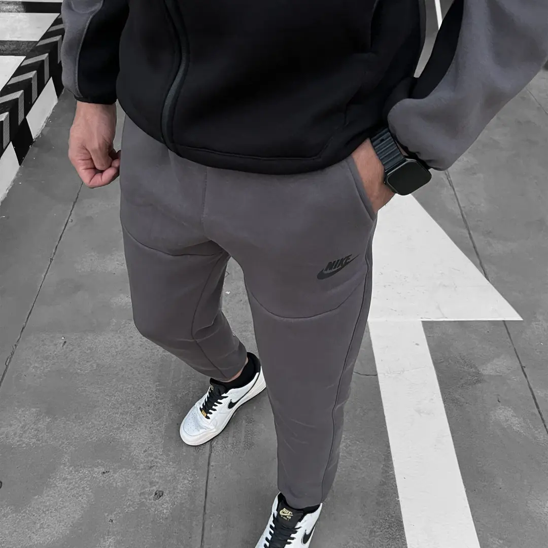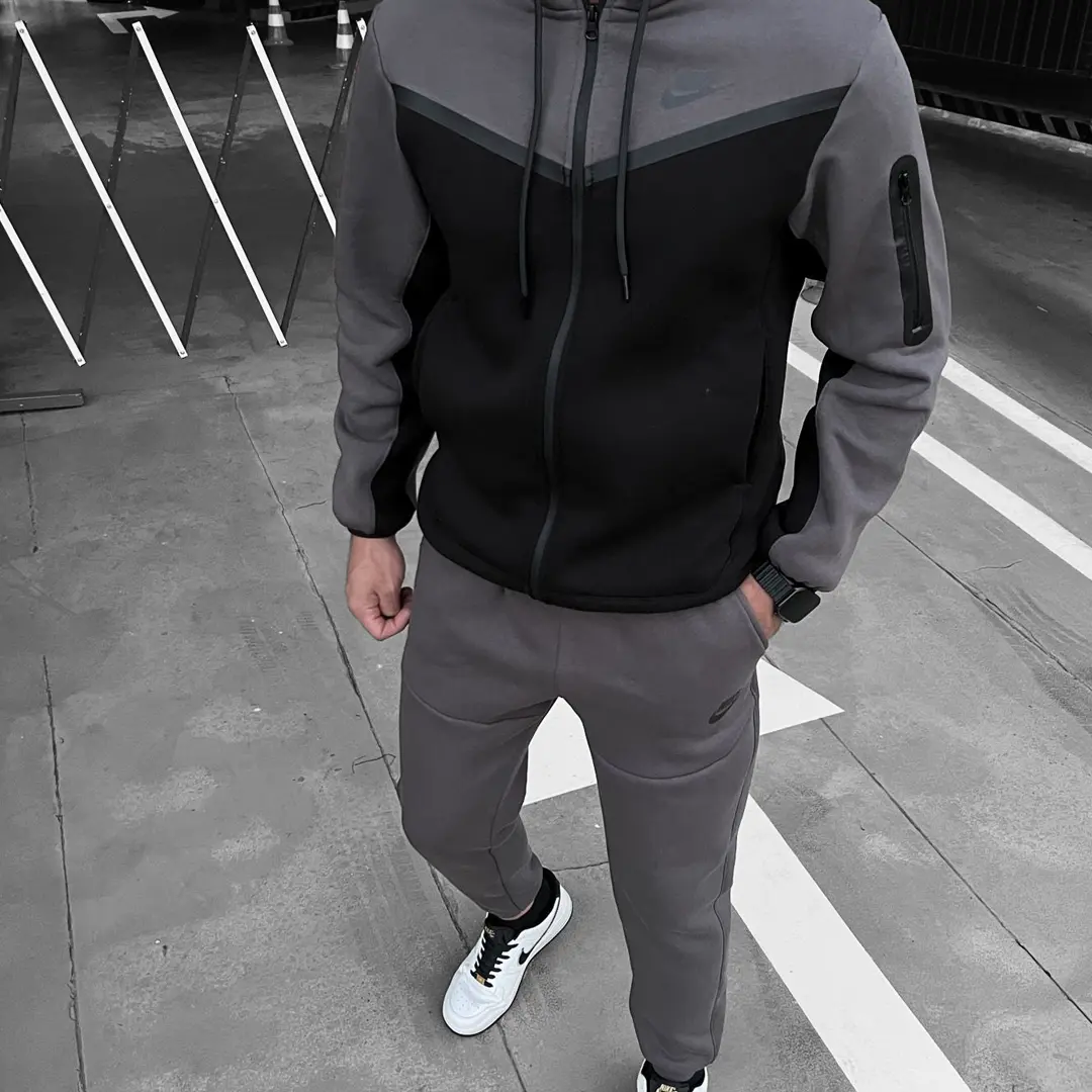 Якщо ти шукаєш універсальний одяг на зиму, Зимовий спортивний костюм Nike (темно-сірий) стане правильним рішенням. Його можна носити з кросівками на флісі, стьобаною жилеткою або шарфом. Такий комплект створює збалансований і сучасний вигляд, забезпечуючи комфорт під час руху.